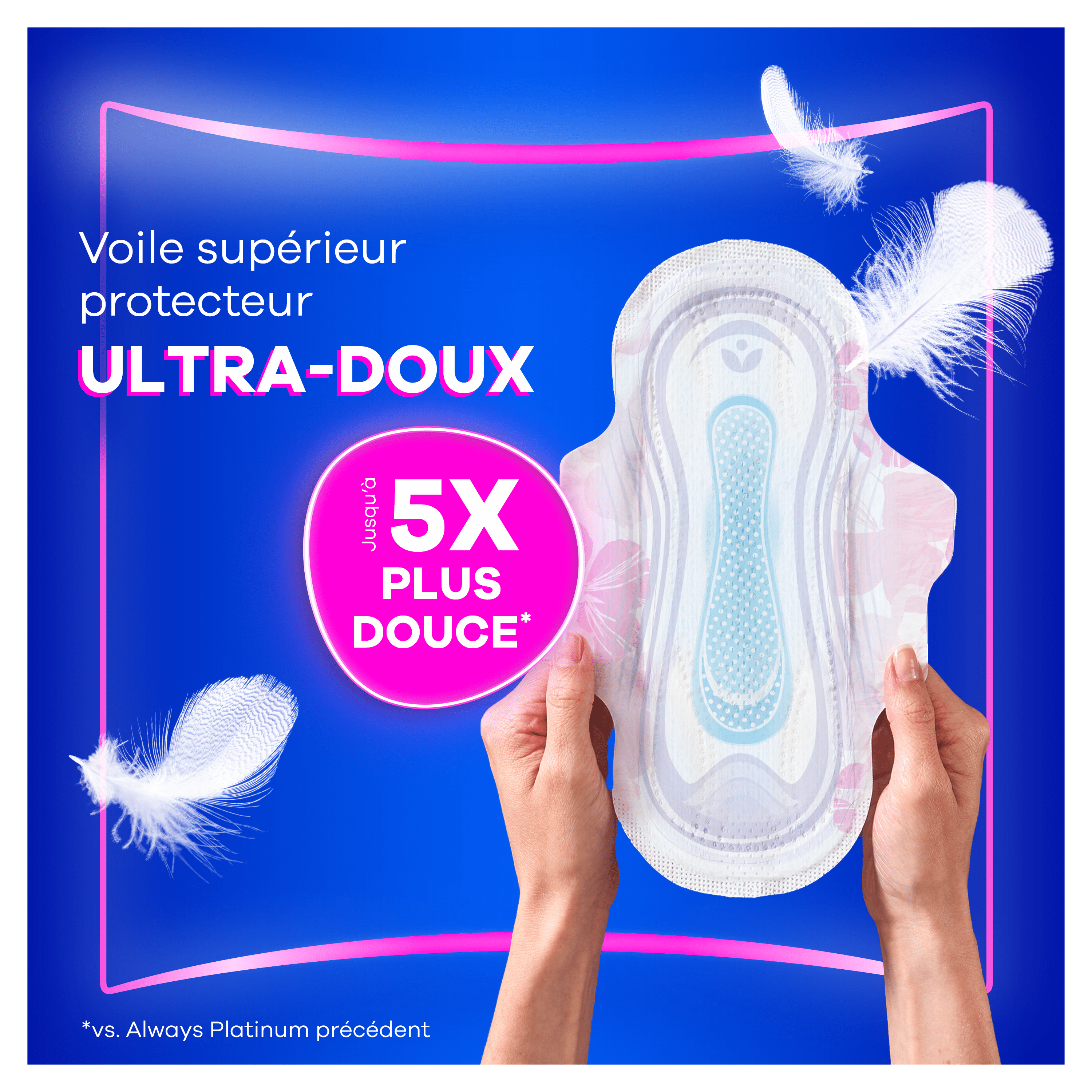 *5 caractéristiques qui offrent une protection, la serviette étant plus douce que les serviettes Always Platinum précédentes