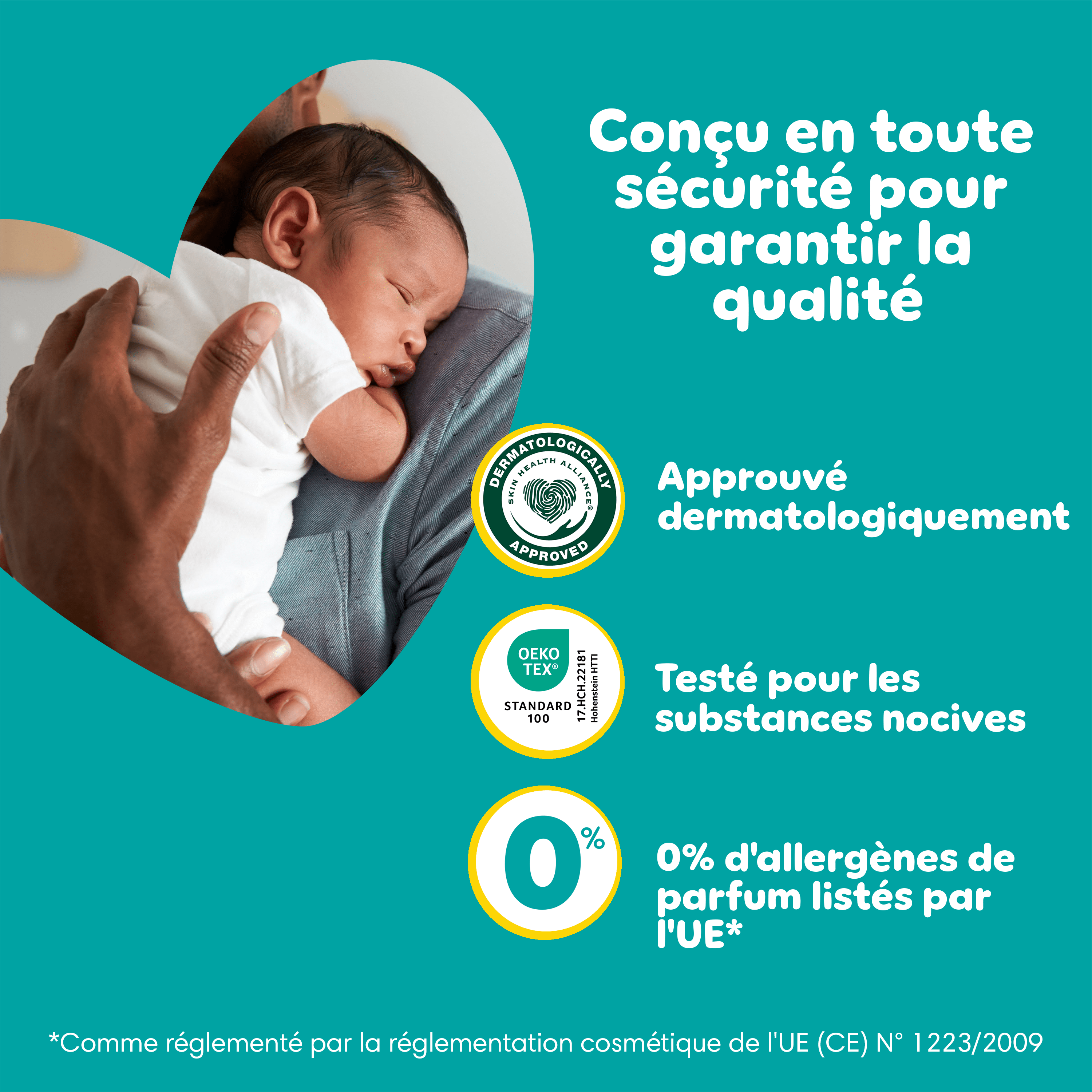 La nuit, votre bébé bouge constamment pendant son sommeil. C’est pourquoi nos couches Pampers Baby-Dry offrent protection et confort pour une nuit jusqu’à 100% sans fuites.